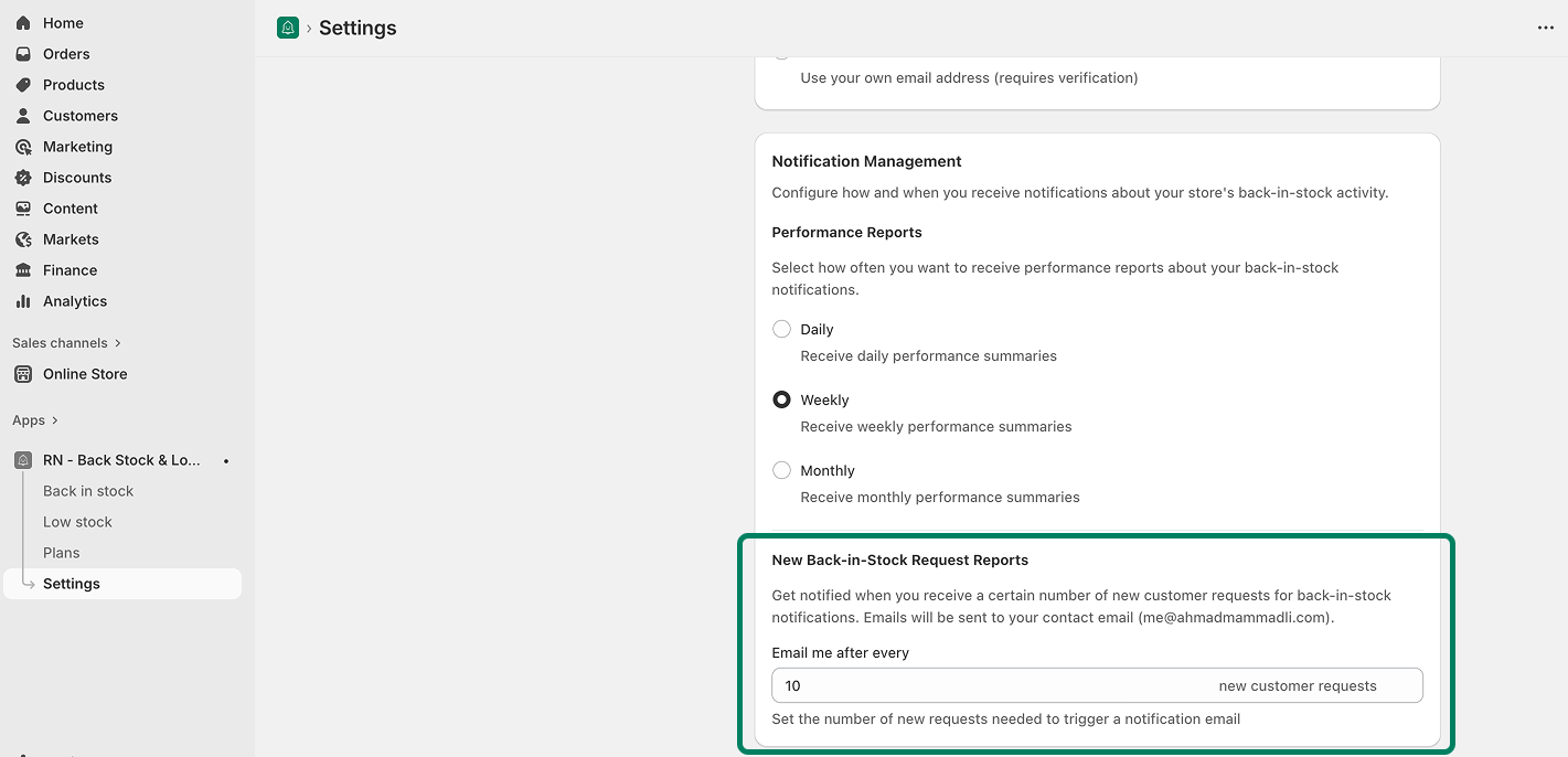 Get notified when your store receives a specific number of new back-in-stock requests.