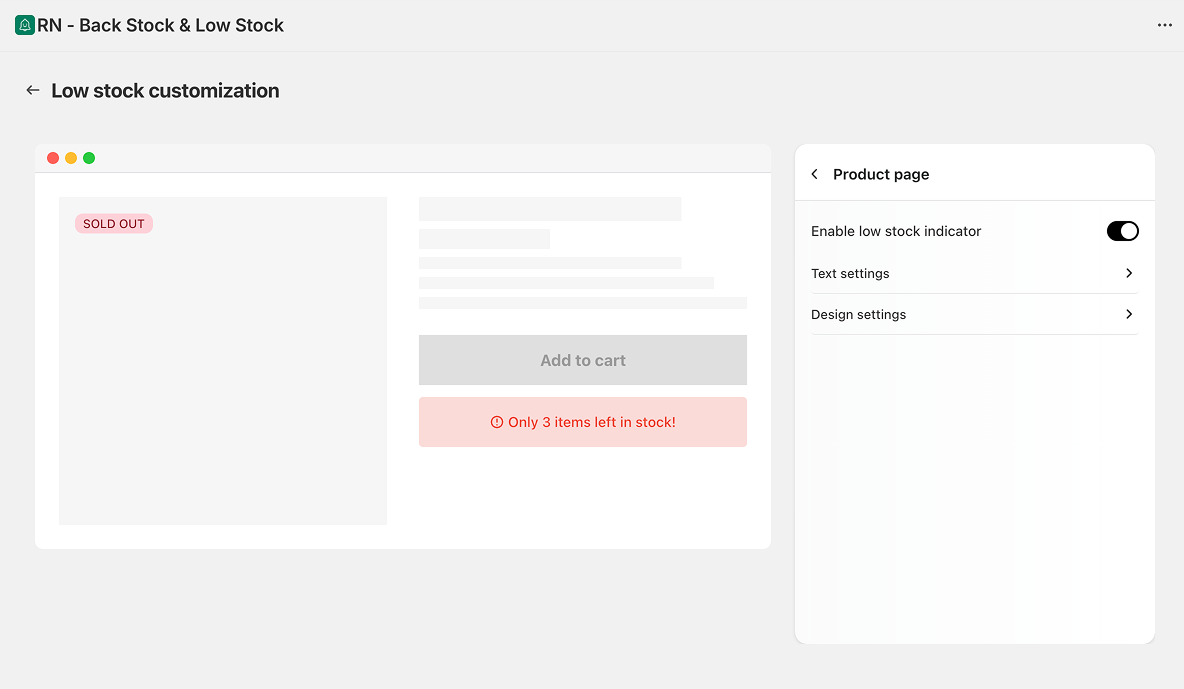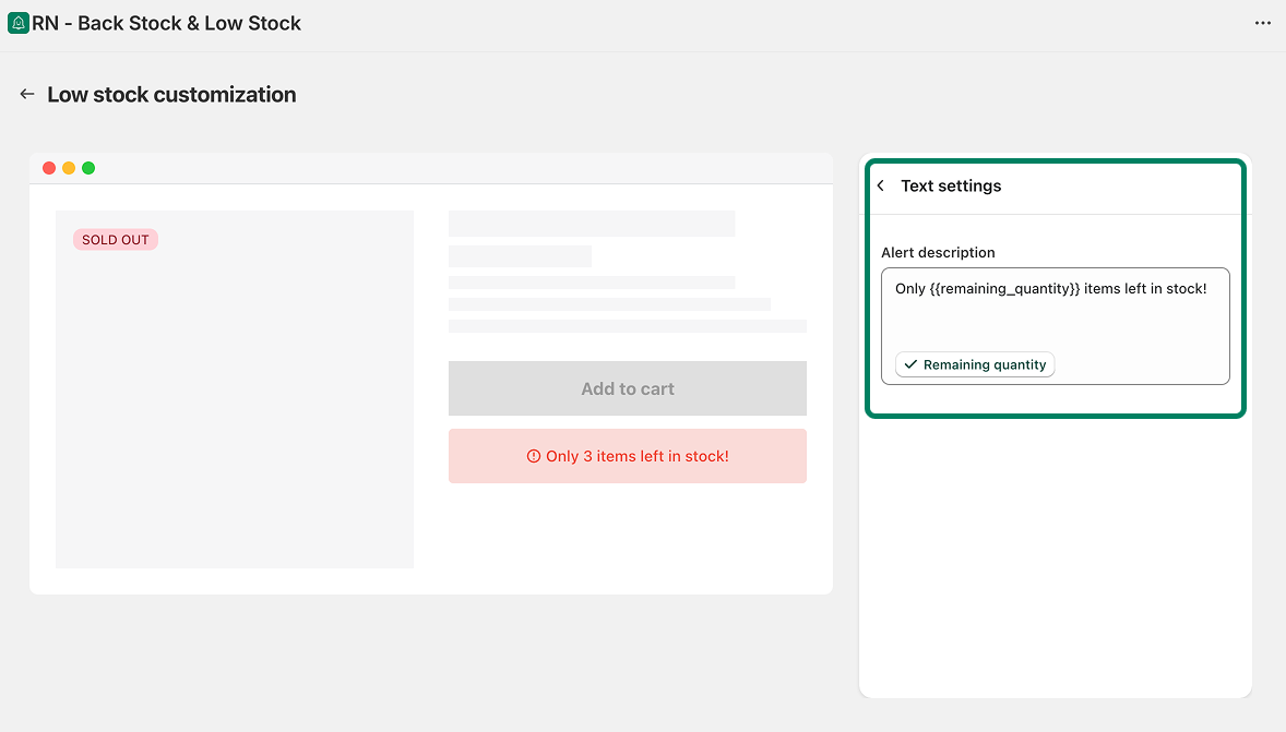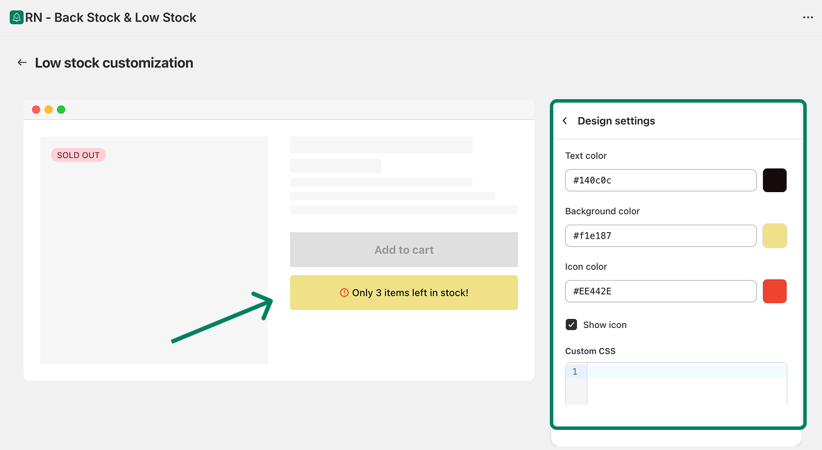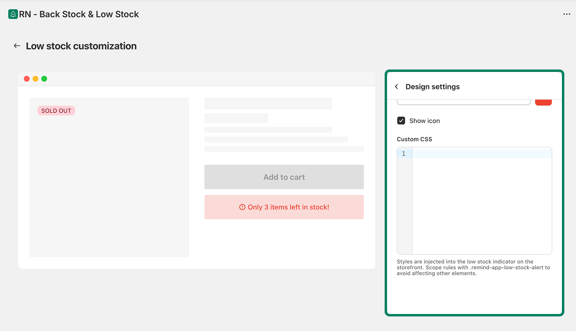 You can customize how low stock messages look and what they say on your product pages. This helps match the message with your store’s style and branding.